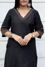 co-ord set of multi coloured thread work in slub cotton!!!pants with Ajrakh patches!!!